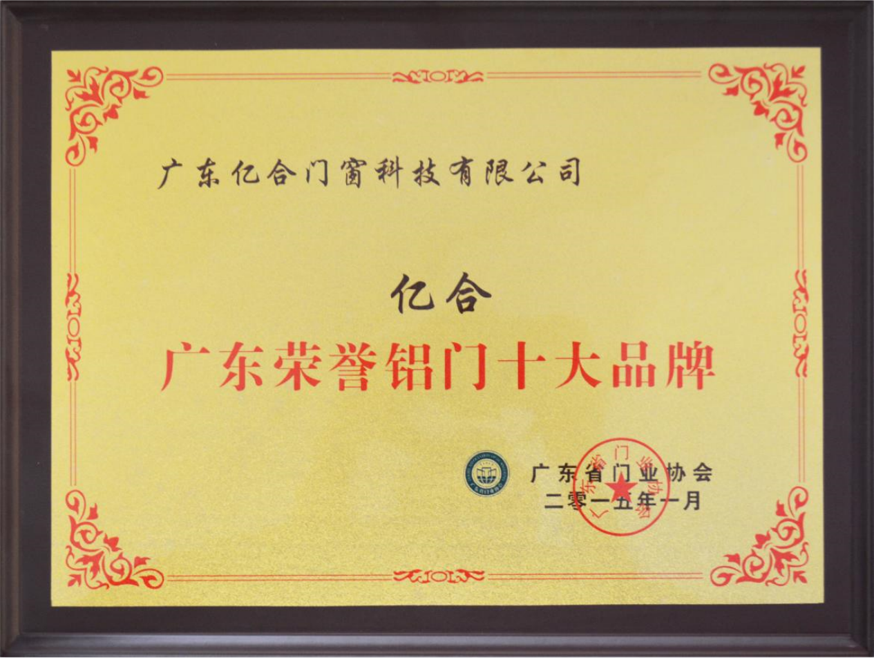 2015年相繼榮獲:“廣東鋁門十大品牌”“廣東木門十大品牌”,“中國家居品牌百強(qiáng)”“廣東省高新技術(shù)產(chǎn)品”