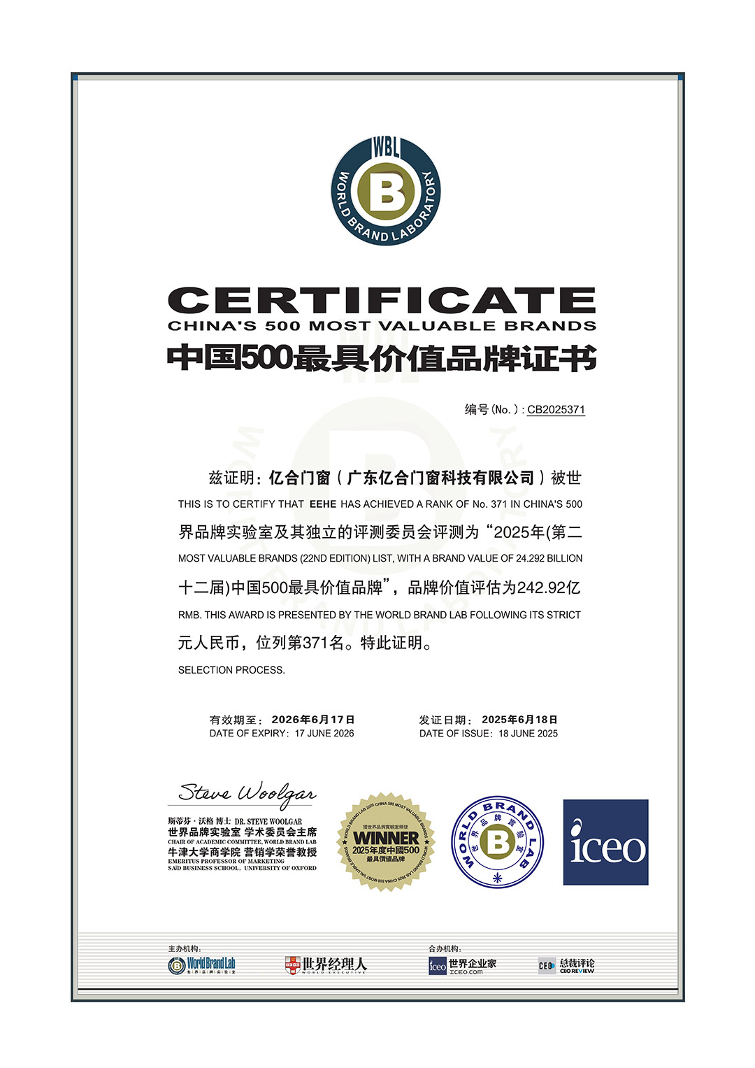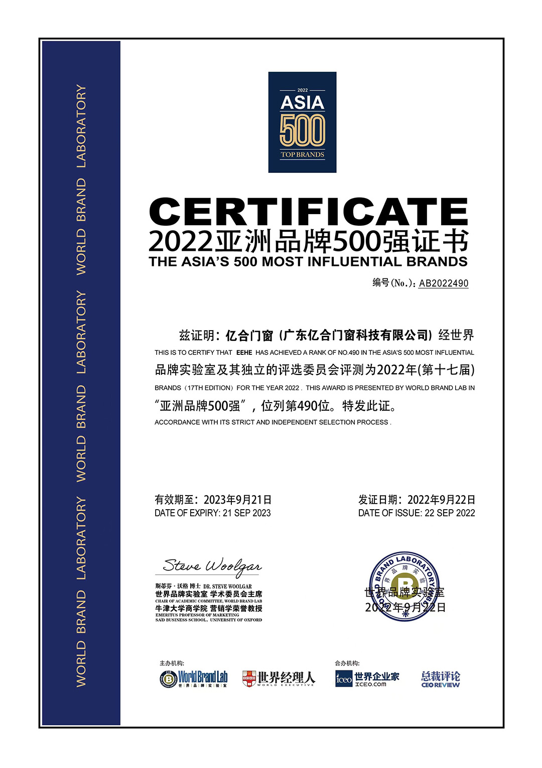 億合門窗再度蟬聯(lián)“亞洲品牌500強(qiáng)”榮譽(yù),彰顯品牌雄厚實(shí)力及影響力