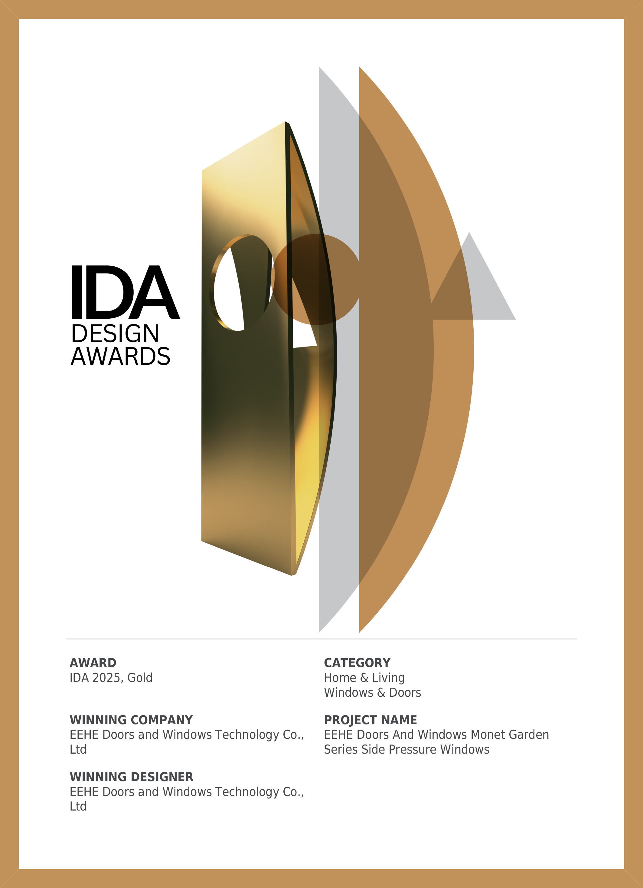 億合門窗榮獲美國IDA國際設(shè)計(jì)大獎金獎