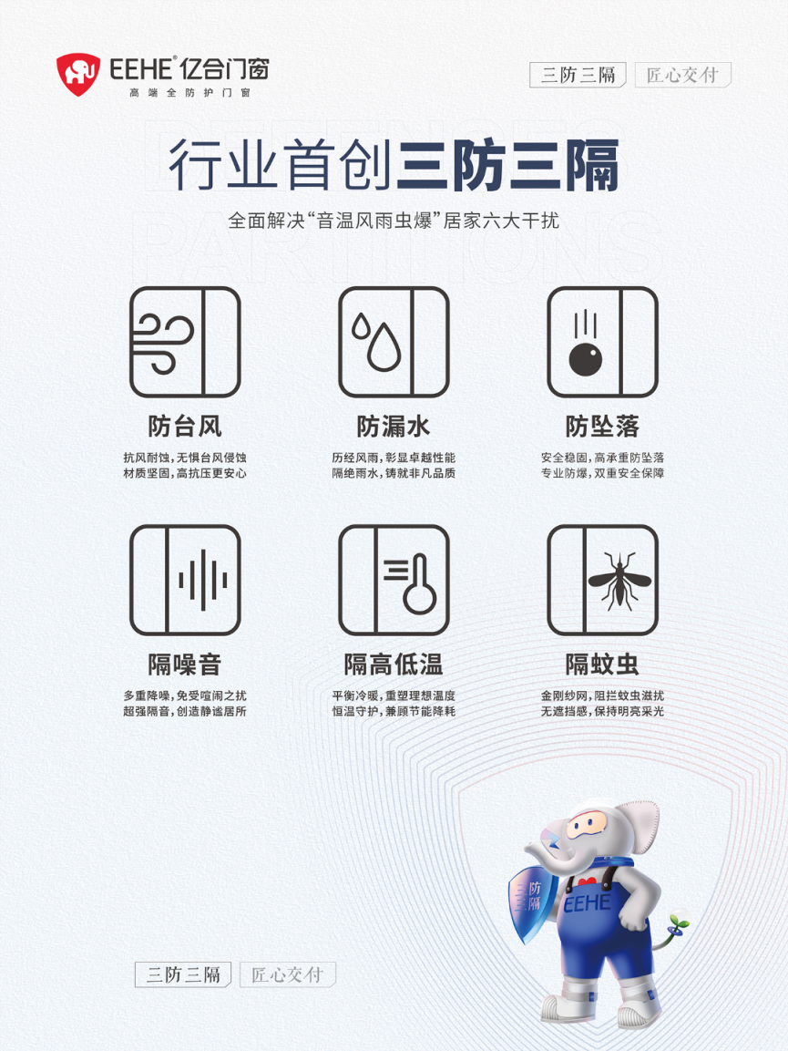 人居的本質(zhì),是在生活空間中獲得身心的安全感與舒適感。而門窗的產(chǎn)品性能與使用體驗(yàn),直接影響著居住感受。億合門窗深刻洞察人居需求,系統(tǒng)性構(gòu)建“三防三隔”+“匠心交付”的6+1全防護(hù)體系,用品質(zhì)與服務(wù)的雙重賦能,重新詮釋門窗對(duì)于美好生活的核心價(jià)值。