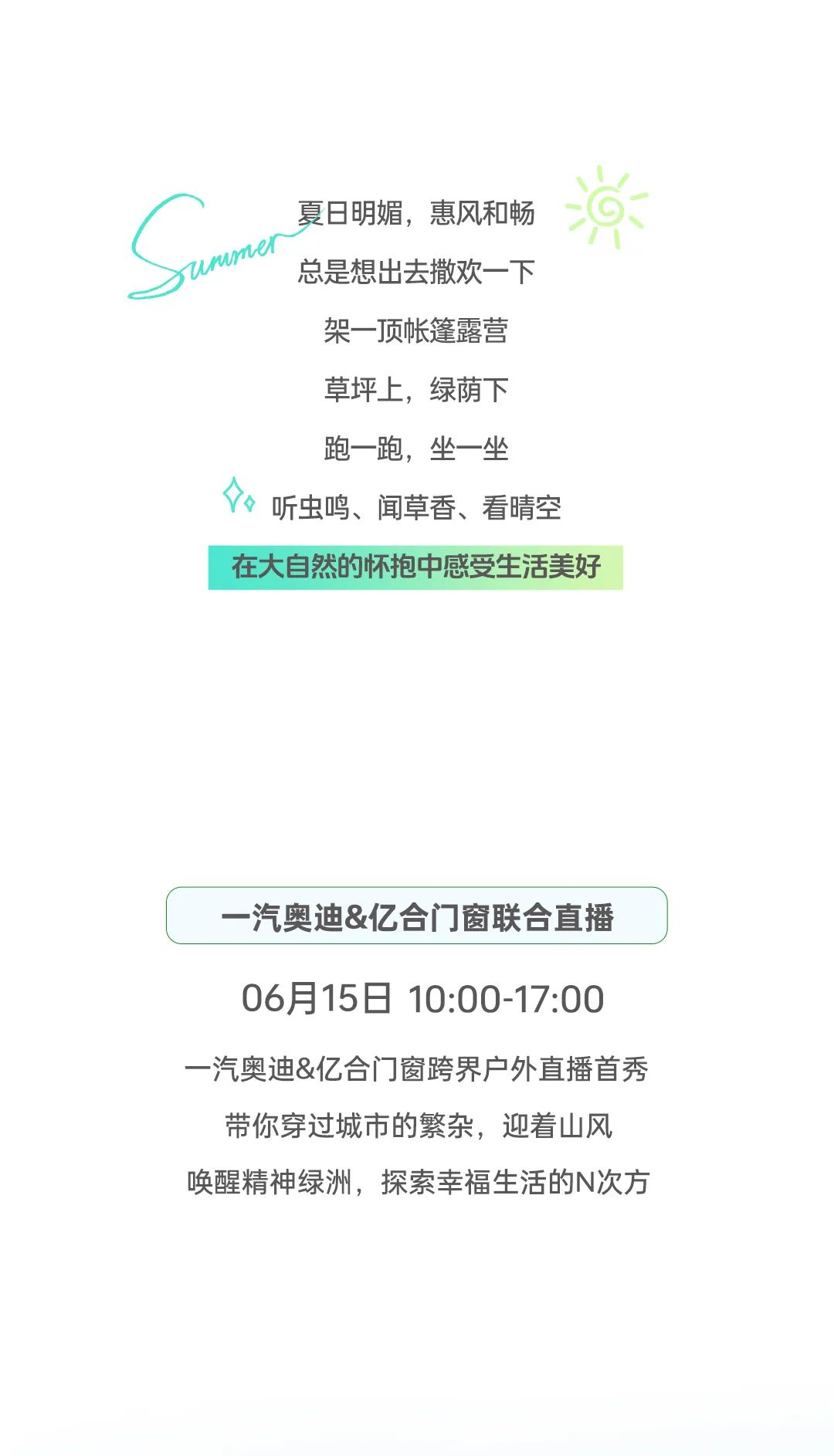 一汽奧迪&億合門窗跨界戶外直播首秀