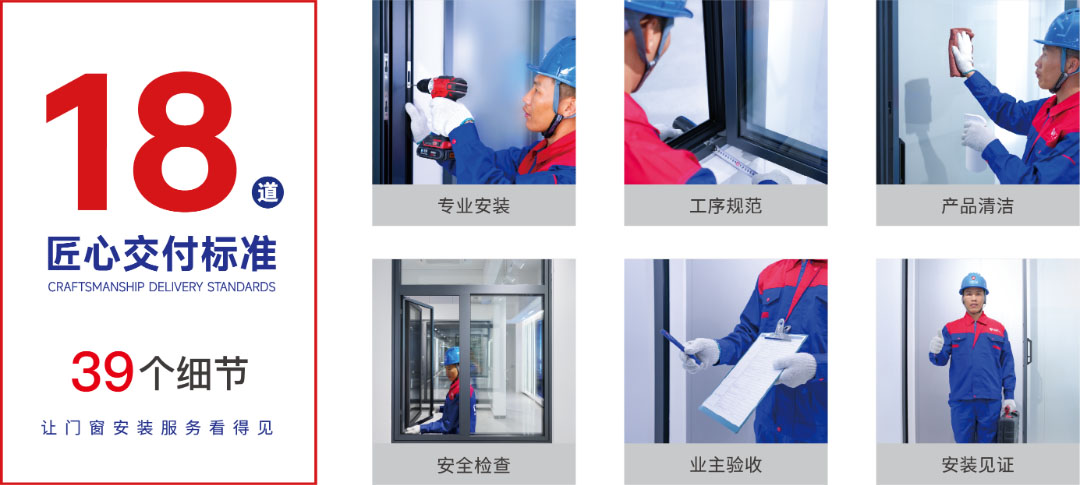 億合門窗在行業(yè)率先實(shí)施“匠心交付”安裝標(biāo)準(zhǔn),因地制宜提供解決方案,由專業(yè)的施工安裝團(tuán)隊(duì)持證上崗,使用標(biāo)準(zhǔn)工具設(shè)備、專用安裝輔材,統(tǒng)一安裝流程及驗(yàn)收標(biāo)準(zhǔn),以18道匠心交付標(biāo)準(zhǔn)和39個(gè)細(xì)節(jié),構(gòu)建安全舒適的家居環(huán)境。此外,億合門窗擁有全面的售后服務(wù)政策,十年質(zhì)保、快速響應(yīng),確保購(gòu)買使用無憂,讓消費(fèi)者選得安心,買得放心,用得省心。