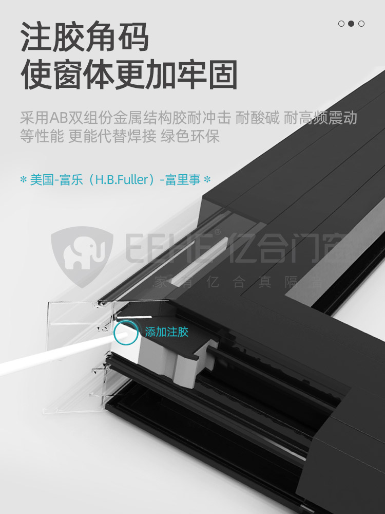 臺(tái)風(fēng)過境時(shí),往往伴隨著強(qiáng)烈的氣流沖擊,考驗(yàn)著門窗的氣密性能。億合門窗以加強(qiáng)中梃設(shè)計(jì)搭配銷釘注膠工藝,通過注入雙組份組角膠,填滿角碼與框體之間的縫隙,使角碼跟框體更緊密結(jié)合在一起,更好地確保產(chǎn)品結(jié)構(gòu)強(qiáng)度,提升其穩(wěn)定性與密封性能,有效防止惡劣天氣帶來的風(fēng)沙入侵。