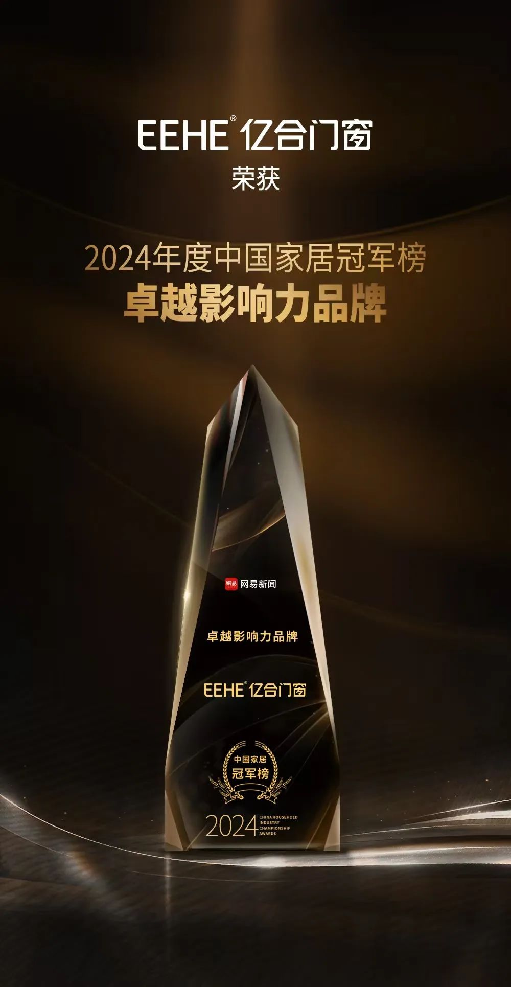 近日,備受業(yè)界矚目的網(wǎng)易家居“2024年度中國家居冠軍榜”正式揭曉。億合門窗憑借深厚的行業(yè)積淀、強大的品牌影響力,成功斬獲“卓越影響力品牌”大獎,億合門窗董事長曾奎榮獲“2024年度中國家居冠軍榜時代前行者”。兩項殊榮不僅是對億合門窗多年來深耕家居領域、持續(xù)創(chuàng)新發(fā)展的充分肯定,更是對億合門窗引領行業(yè)趨勢、推動家居消費升級的高度認可。