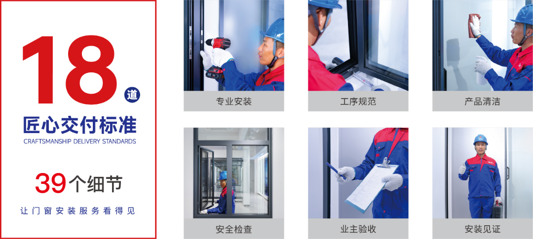在追求產(chǎn)品卓越性能的同時(shí),億合門窗同樣將安裝交付環(huán)節(jié)的環(huán)保與健康視為關(guān)鍵,全力保障家居環(huán)境的綠色安全。億合門窗率先實(shí)施“匠心交付”安裝標(biāo)準(zhǔn),圍繞18道工序、39個(gè)細(xì)節(jié)制定嚴(yán)格規(guī)則,構(gòu)建“產(chǎn)品+ 安裝+交付+服務(wù)”全鏈條品質(zhì)保障體系。
