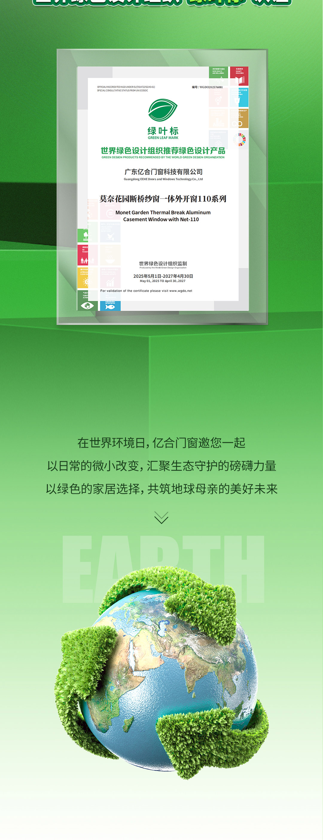 綠色引領(lǐng)·再獲殊榮 | 億合門窗榮獲世界綠色設(shè)計(jì)組織“綠葉標(biāo)”認(rèn)證!