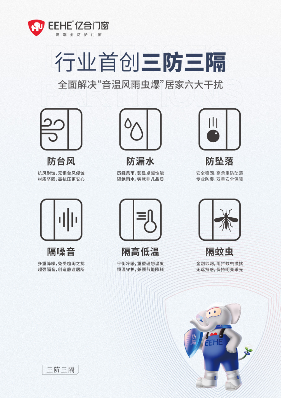 在產(chǎn)品標(biāo)準(zhǔn)上,億合門窗行業(yè)首創(chuàng)“三防三隔”全防護(hù)標(biāo)準(zhǔn),以防臺(tái)風(fēng)、防漏水、防墜落的結(jié)構(gòu)設(shè)計(jì),結(jié)合隔噪音、隔高低溫、隔蚊蟲的性能優(yōu)化,實(shí)現(xiàn)對(duì)家居環(huán)境的全方位守護(hù)。其核心在于材料與工藝的雙重突破,既保證結(jié)構(gòu)穩(wěn)固,又提升隔音、節(jié)能保溫與防滲水等效果。依托與清華大學(xué)、哈爾濱工業(yè)大學(xué)、華南理工大學(xué)等高校共建的科研平臺(tái),這些技術(shù)通過了反復(fù)測試與嚴(yán)苛認(rèn)證,成為行業(yè)品質(zhì)的標(biāo)桿。