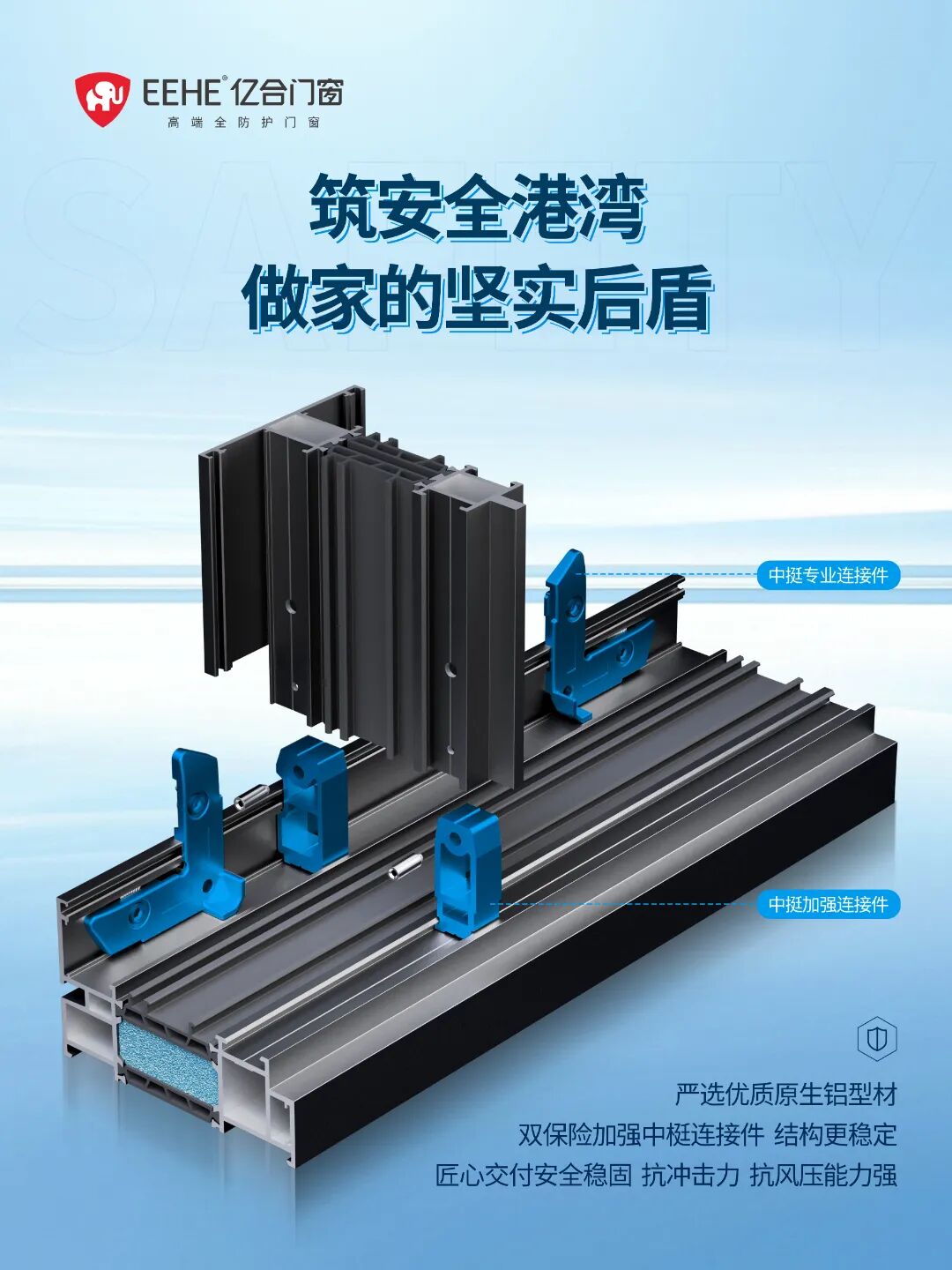 安全感是人居舒適的基石。億合門窗始終將安全性能置于首位,采用航空級原生鋁型材,嚴(yán)格執(zhí)行1.8mm國標(biāo)壁厚標(biāo)準(zhǔn),不僅硬度高、韌性好、抗腐蝕性強(qiáng),更兼具出色的結(jié)實度與耐用性。
