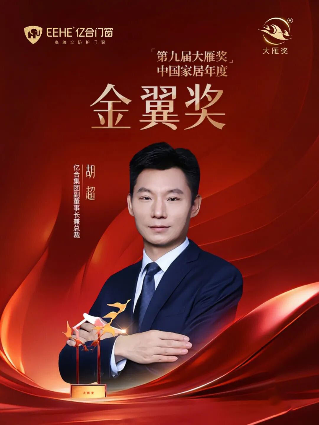 「中國家居年度金翼人物」是大雁獎(jiǎng)人物獎(jiǎng)體系中,表彰驅(qū)動(dòng)行業(yè)發(fā)展的戰(zhàn)略先行者的榮譽(yù)。億合集團(tuán)副董事長兼總裁胡超,深耕門窗領(lǐng)域十余載,兼具前沿戰(zhàn)略視野與市場營銷專業(yè)積淀,以精準(zhǔn)的行業(yè)洞察、超前的經(jīng)營智慧與創(chuàng)新的發(fā)展思維,成為億合門窗高質(zhì)量發(fā)展的核心推動(dòng)者。他以系統(tǒng)化的經(jīng)營規(guī)劃,率先推動(dòng)企業(yè)數(shù)字化轉(zhuǎn)型與智造升級(jí)。用實(shí)干與擔(dān)當(dāng)為中國門窗產(chǎn)業(yè)高質(zhì)量發(fā)展注入強(qiáng)勁動(dòng)能,彰顯新時(shí)代門窗行業(yè)領(lǐng)軍者的格局與魄力。