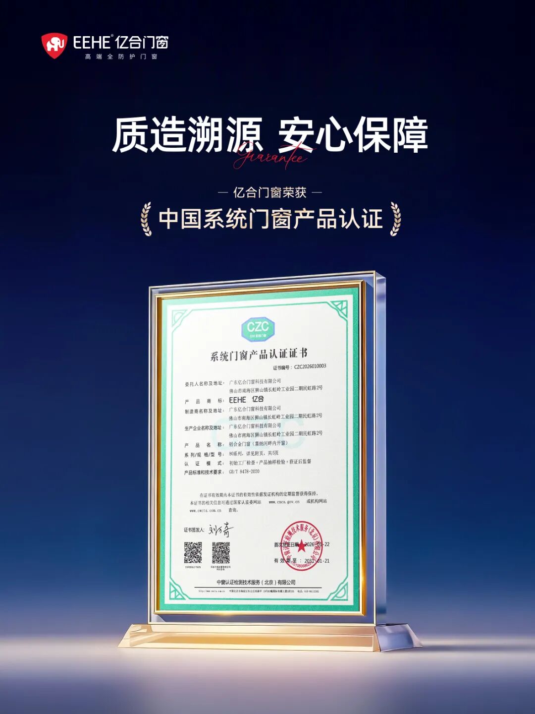 當(dāng)前,中國門窗行業(yè)正從規(guī)模擴(kuò)張邁向質(zhì)量領(lǐng)跑,從產(chǎn)品競爭轉(zhuǎn)向體系競爭,權(quán)威認(rèn)證成為了品牌實(shí)力與用戶信任的核心標(biāo)尺。億合門窗堅守高端定位、深耕技術(shù)創(chuàng)新、提升服務(wù)水平,以嚴(yán)苛標(biāo)準(zhǔn)與硬核實(shí)力,獲頒中國系統(tǒng)門窗產(chǎn)品認(rèn)證與中國門窗行業(yè)首批安裝服務(wù)認(rèn)證品牌雙項(xiàng)權(quán)威認(rèn)可,為億萬家庭提供更安全、更舒適、更優(yōu)質(zhì)的高端全防護(hù)門窗解決方案。