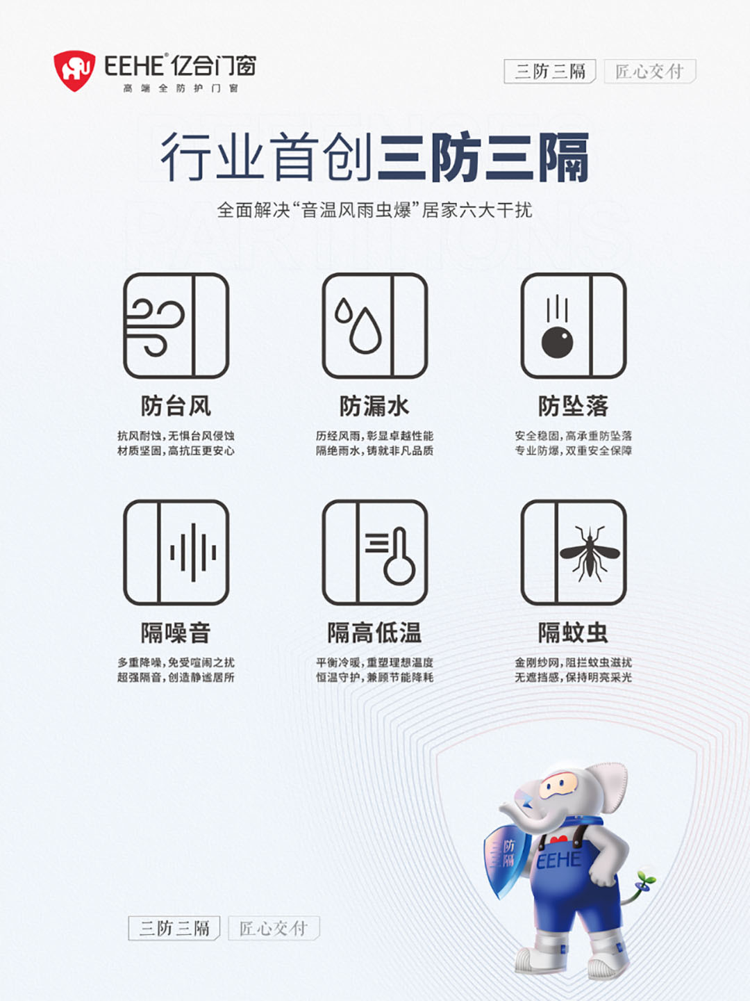 億合門窗成功通過CZC系統(tǒng)門窗產(chǎn)品認(rèn)證,標(biāo)志著產(chǎn)品在技術(shù)水平、品質(zhì)質(zhì)量與綜合性能上達(dá)到行業(yè)高階水準(zhǔn),為用戶居家安全與品質(zhì)生活注入權(quán)威保障。秉持高標(biāo)準(zhǔn)、嚴(yán)要求的研發(fā)理念,億合門窗在行業(yè)首創(chuàng)“三防三隔”全防護(hù)標(biāo)準(zhǔn),構(gòu)建防臺風(fēng)、防漏水、防墜落,隔噪音、隔高低溫、隔蚊蟲六大防護(hù)體系,從源頭解決人居痛點(diǎn)。同時,億合門窗以智能化生產(chǎn)賦能匠心工藝,實(shí)現(xiàn)精度與品質(zhì)雙重提升,以始終如一的堅守,鑄就經(jīng)得起權(quán)威檢驗(yàn)、時間考驗(yàn)與用戶信賴的高端全防護(hù)門窗品質(zhì)。