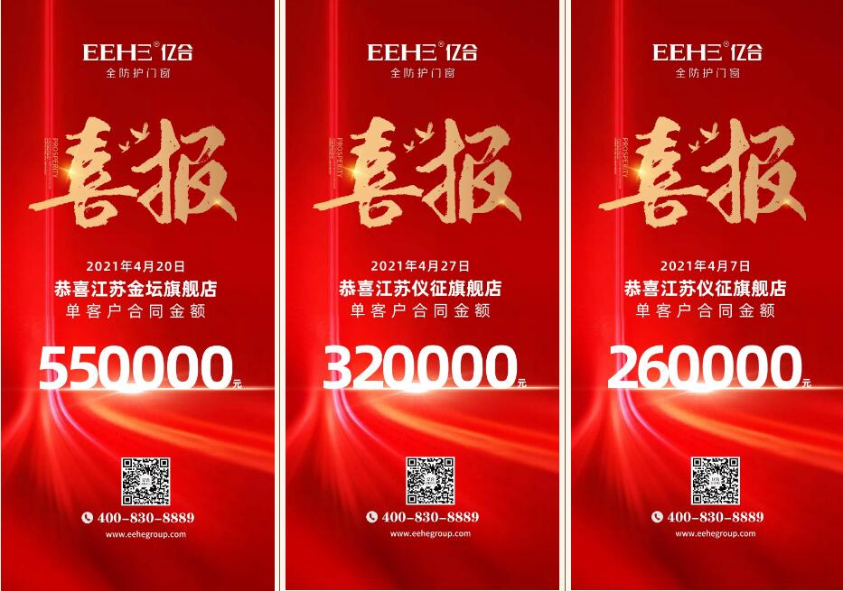 截止本月26日,億合門(mén)窗“情投億合,為愛(ài)升級(jí)”全國(guó)大型促銷活動(dòng)訂單量已產(chǎn)生  筆,合同金額高達(dá)   。再次證明了億合門(mén)窗的品牌影響力和產(chǎn)品競(jìng)爭(zhēng)力。