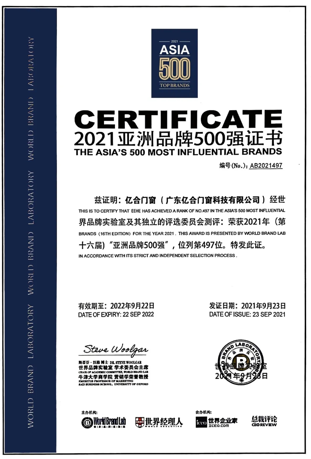 《亞洲品牌500強(qiáng)》的評判標(biāo)準(zhǔn)是品牌的亞洲影響力,品牌影響力是指品牌開拓市場、占領(lǐng)市場、并獲得利潤的能力?;谠摌?biāo)準(zhǔn),億合門窗憑借著自身卓越實(shí)力和雄厚的品牌影響力榮登榜單,與豐田汽車、國家電網(wǎng)、工商銀行、海爾、騰訊、三星、索尼、本田、中國人壽、華為等品牌共同入選《亞洲品牌500強(qiáng)》!
