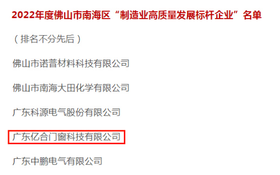 穩(wěn)當“實力派”!億合門窗喜獲2022年南海區(qū)制造業(yè)高質(zhì)量發(fā)展標桿企業(yè)