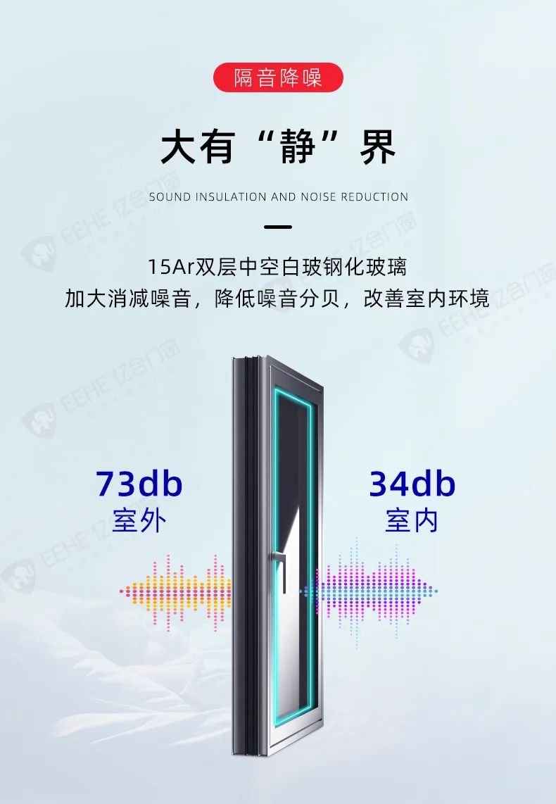 為提高產(chǎn)品的隔音性能,億合高端全防護(hù)門窗秉承精益求精的工匠精神,從細(xì)微之處出發(fā),采用航空級原生鋁型材,中空玻璃結(jié)構(gòu),多道密封設(shè)計(jì),打造具有優(yōu)異隔音性能的結(jié)構(gòu)體系,有效阻隔噪音,讓生活回歸寧靜舒適,享受春日好睡眠。
