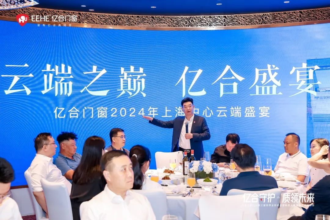 云端高定私宴,共攬魔都勝景。隨著夜幕降臨,賓朋滿座,敘舊傾談,歡樂合影,在此把酒言歡。在光影交錯(cuò)、衣香鬢影之間,億合門窗董事長曾奎作晚宴致辭,并與億合門窗副董事長吳永康、副董事長胡超、副總裁庫騰等公司核心高管團(tuán)隊(duì)向全體來賓共同祝酒,慶賀本次活動取得圓滿成功,感謝大家的一路陪伴與支持,期待未來繼續(xù)與大家攜手并進(jìn),砥礪前行,共繪藍(lán)圖!