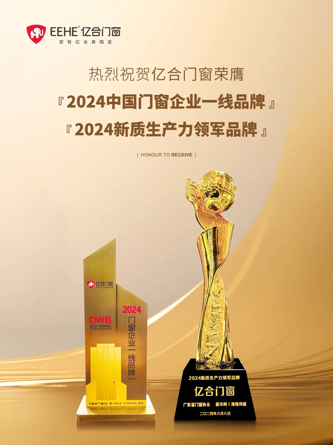 喜訊 | 億合門窗榮獲“2024新質(zhì)生產(chǎn)力領(lǐng)軍品牌”和“2024門窗企業(yè)一線品牌”雙項殊榮!