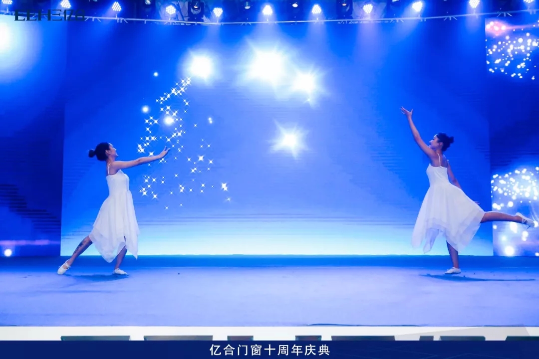 緊接著一支唯美中帶著張力的月光舞,仿佛在訴說著億合門窗10年來的故事,其中蘊(yùn)含感動(dòng)與感恩,把開場的氣氛推向高潮~