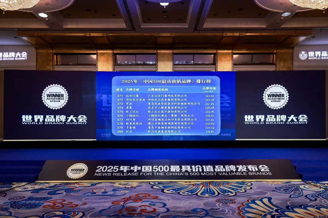 會上,備受矚目的2025《中國 500 最具價值品牌》報告重磅發(fā)布。億合門窗憑借雄厚的品牌實力、持續(xù)的創(chuàng)新能力以及卓越的市場口碑,以242.92億元的品牌價值位列第371名,與國家電網(wǎng)、中國石油、海爾、中國工商銀行、華潤等知名品牌共同上榜。這是億合門窗自2018 年首次入選后,連續(xù)8年成功登榜,彰顯了強勁的品牌實力。