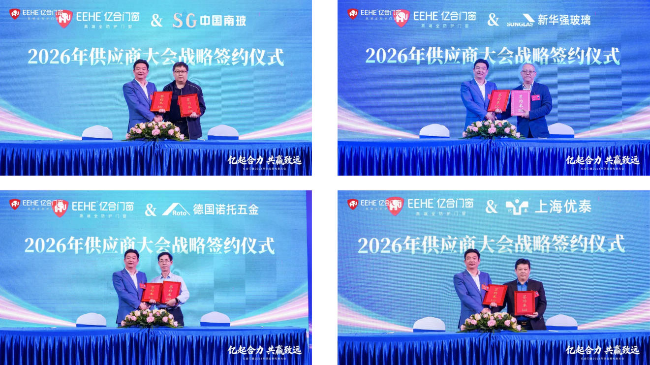 一紙協(xié)議,承載信任擔當;一次攜手,開啟共贏新篇。為夯實供應(yīng)鏈優(yōu)勢、提升產(chǎn)品質(zhì)量、拓寬產(chǎn)品版圖,億合集團董事長曾奎與12家核心供應(yīng)商代表舉行簽約儀式。此次簽約旨在整合雙方優(yōu)勢,依托億合供應(yīng)鏈嚴苛的品控體系與豐富的產(chǎn)品矩陣,打造更高端、更環(huán)保、更具質(zhì)價比的高端全防護門窗解決方案,為消費者提供更豐富的產(chǎn)品選擇、更可靠的品質(zhì)保障與更專業(yè)的服務(wù)體驗。