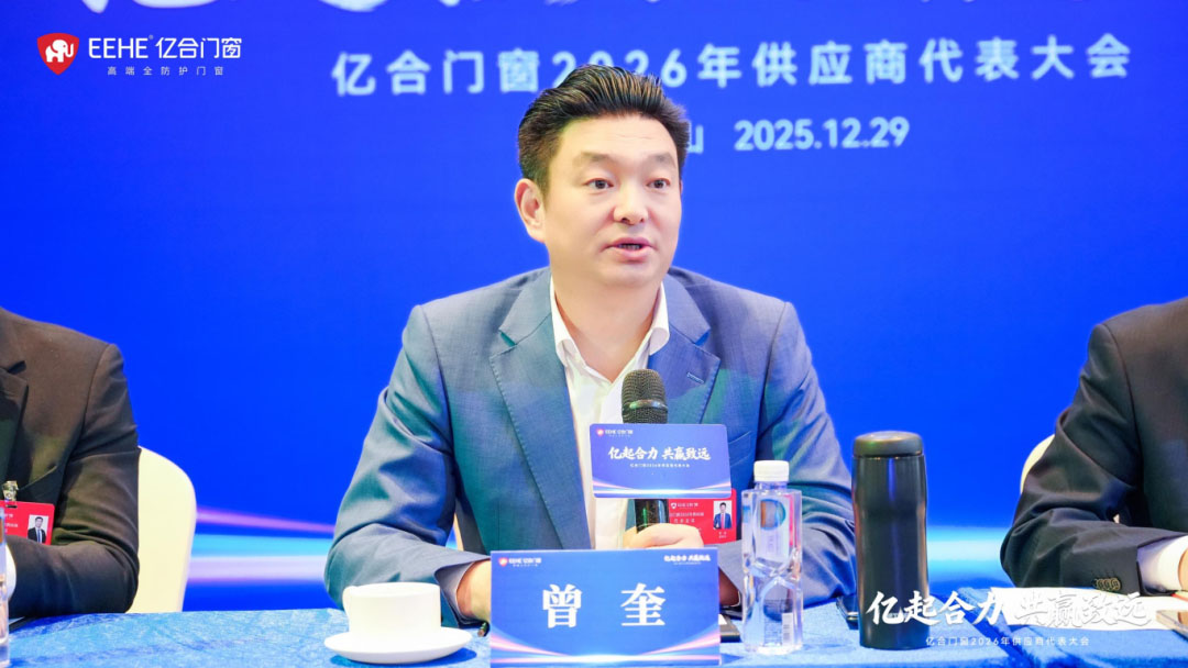 大會上,億合集團董事長曾奎發(fā)表主旨講話。曾董分享了億合科技園的建設(shè)進度與品牌出海成果,并提出,2026年,億合門窗將適新應(yīng)變,以“協(xié)、準、質(zhì)”三維戰(zhàn)略錨定供應(yīng)鏈升級方向,打造精益運營、效率驅(qū)動、品質(zhì)領(lǐng)先的供、產(chǎn)、研協(xié)同系統(tǒng),實現(xiàn)標準化、信息化、系統(tǒng)化,攜手伙伴共建世界級門窗產(chǎn)業(yè)生態(tài)。