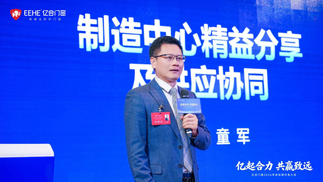 億合門窗采購中心總監(jiān)甘孝東回顧了2025年供應(yīng)鏈合作成效。他表示,依托規(guī)范管理與緊密協(xié)作,億合在采購響應(yīng)速度、供應(yīng)交付周期及綜合采購成本上實現(xiàn)大幅優(yōu)化。億合也將聚焦內(nèi)外協(xié)同、分級管理、指標考核、數(shù)據(jù)管控、流程優(yōu)化、服務(wù)提升等方面,建立柔性配套,與供應(yīng)商伙伴實現(xiàn)協(xié)同增效,全力打造高效、開放、創(chuàng)新的大供應(yīng)鏈生態(tài)。