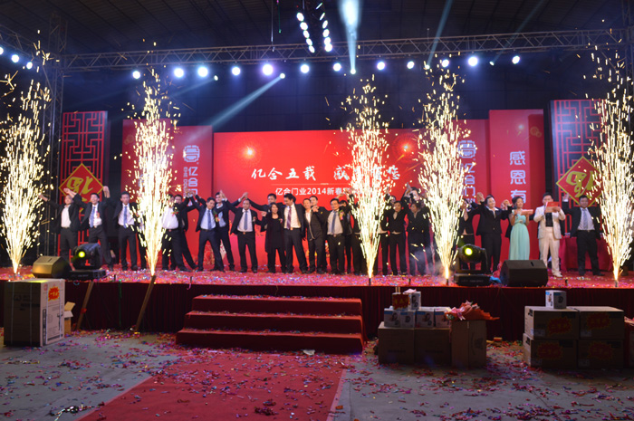 下午六點(diǎn)整,晚宴正式開始。一曲振奮人心的開場舞《開門紅》之后,首先由億合門窗董事長曾奎先生致歡迎辭,他對過去一年億合人的辛勤耕耘和付出表示衷心感謝,并展望了2014年的市場規(guī)劃及品牌戰(zhàn)略,對億合未來的發(fā)展充滿信心和期待。曾董的講話極大的鼓舞了大家的士氣,在熱烈的掌聲和激情歡呼聲中,香檳祝酒儀式正式拉開晚會的序幕。
