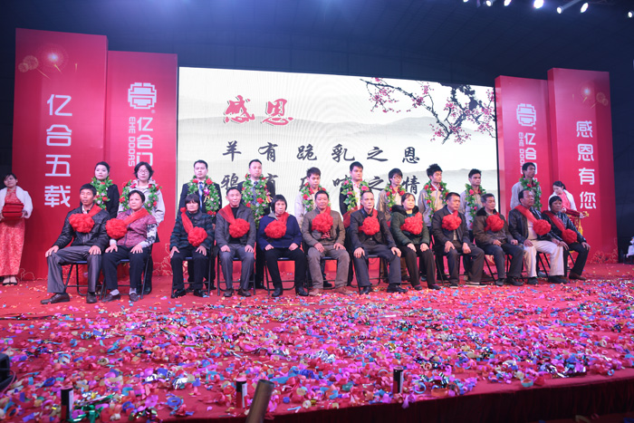 1月7日傍晚,華燈初上,流光溢彩的億合門窗公司總部里里外外都充滿了節(jié)日的歡樂氣氛。辭舊迎新之時,億合門窗五周年慶典暨答謝晚宴也如期而至。億合人用一年的努力和汗水換取了成功的喜悅,歲末時分,正值億合五周年慶典,億合總部再度掀起感恩狂潮!參加晚宴的有來自億合門窗供應(yīng)商、經(jīng)銷商及億合門窗員工共計超過八百人,規(guī)模之大前所未有。