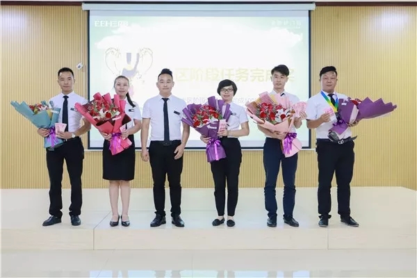 渠道總監(jiān)與區(qū)域階段完成率獲獎(jiǎng)精英合影
