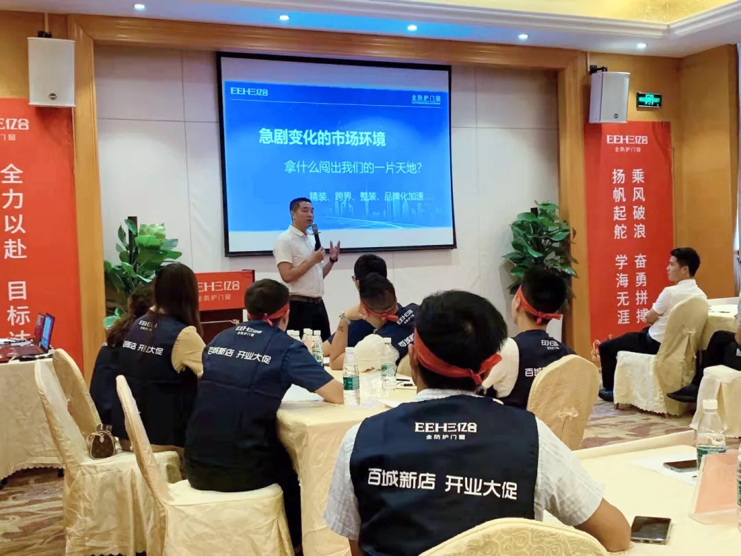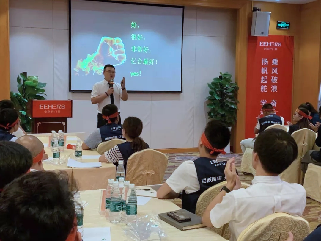 億合門窗國(guó)內(nèi)營(yíng)銷總監(jiān)宋海鵬先生首先對(duì)各位家人的到來表示熱烈的歡迎,并對(duì)現(xiàn)在行業(yè)目前的新思想、新格局、新動(dòng)向進(jìn)行講解。從店面形象、店面位置、團(tuán)隊(duì)組建、管理方面進(jìn)行全面的分析。并表示學(xué)習(xí)力就是競(jìng)爭(zhēng)力,我們要時(shí)刻保持空杯心態(tài)。