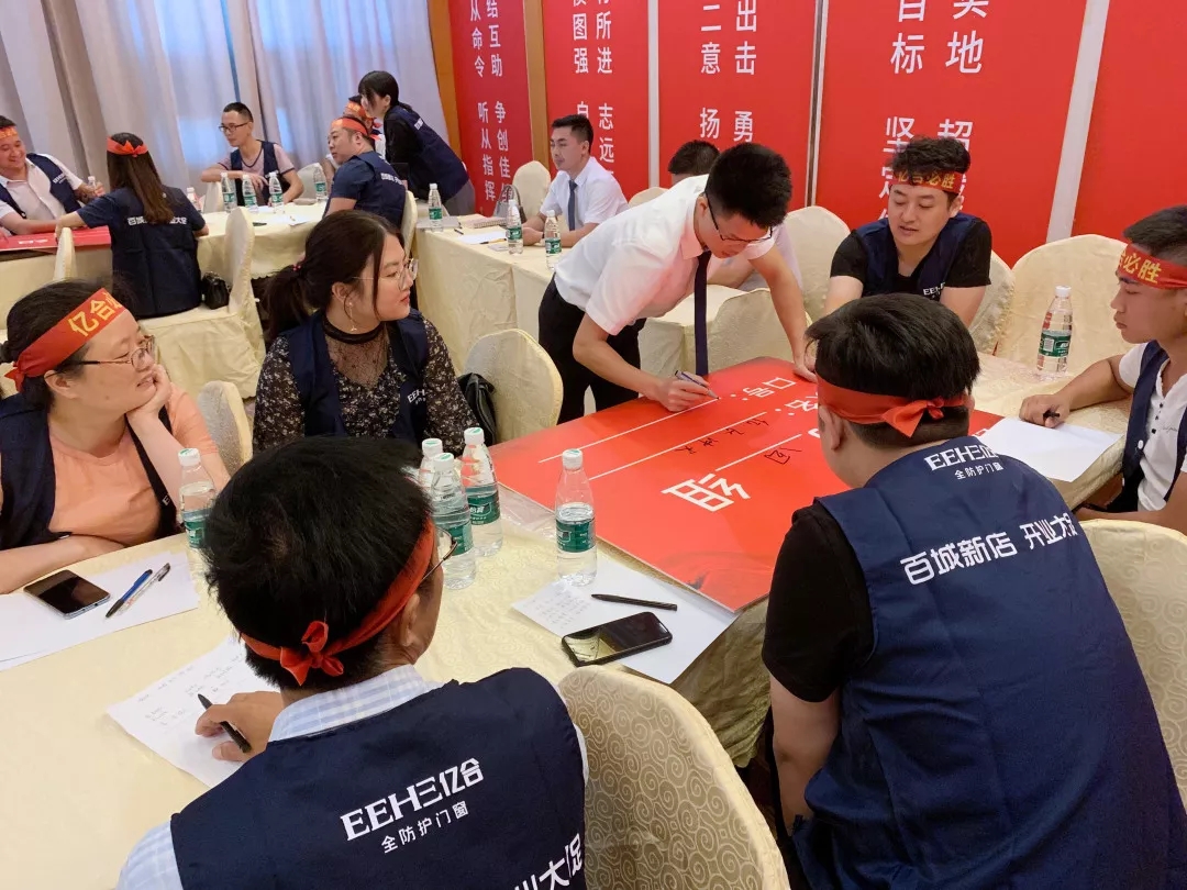 此次大會(huì)過程中,對(duì)品牌進(jìn)行了團(tuán)隊(duì)建設(shè)、營(yíng)銷培訓(xùn)以及此次【百城新店·開業(yè)大促】活動(dòng)的詳細(xì)講解,組建了五大軍團(tuán),各軍團(tuán)立下軍令狀,勢(shì)必在開業(yè)大促中大展身手,創(chuàng)造億合門窗又一個(gè)傲人成績(jī)。