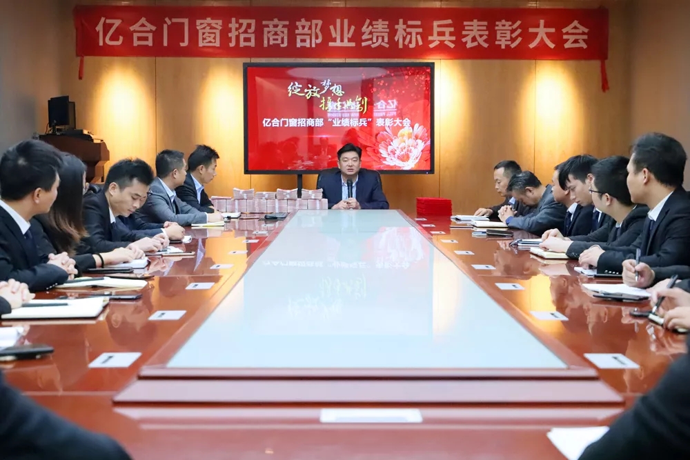 2019年11月29日,億合門窗招商部在億合科技園會議室召開2019年招商部“業(yè)績標兵”表彰大會,億合門窗董事長曾奎先生攜公司高層領導及招商部全體人員參與此次大會。