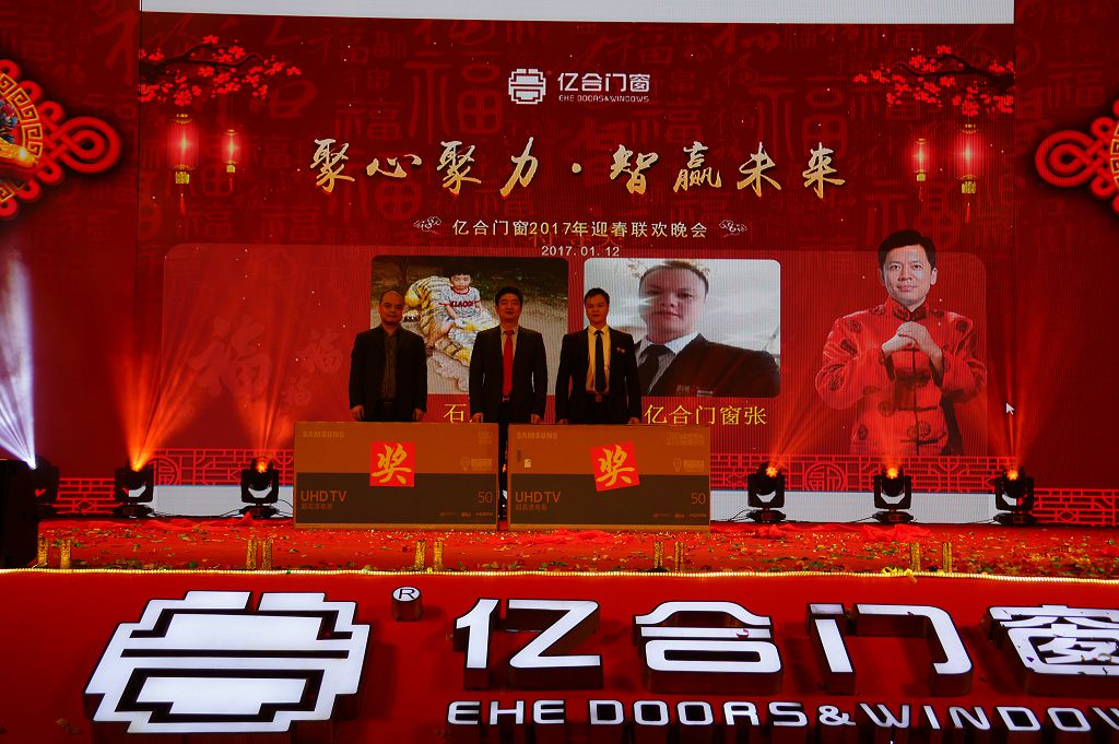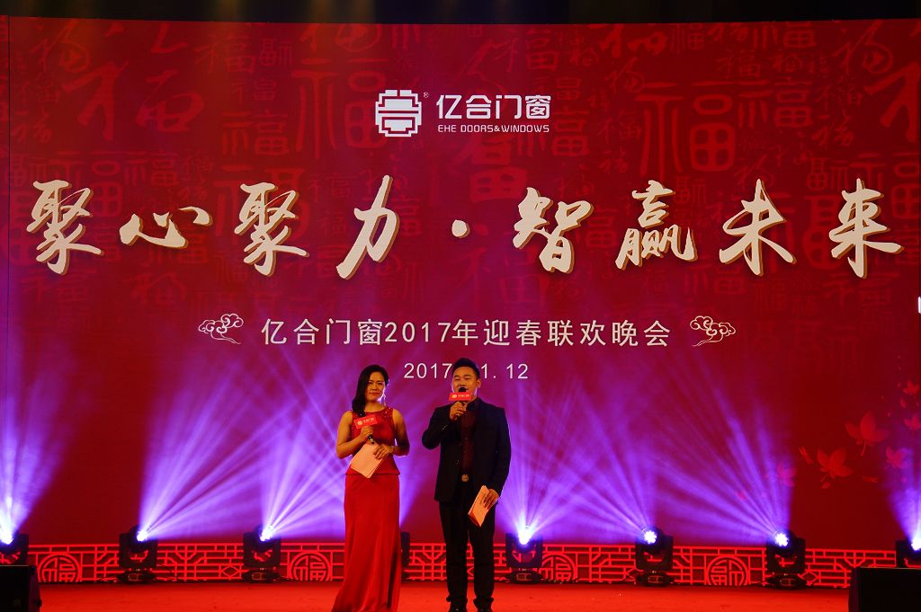 2017年1月12日,以“聚心聚力·智贏未來(lái)”為主題的“億合門窗2017年迎春聯(lián)歡晚會(huì)”在億合門窗科技園隆重舉行。突如其來(lái)的降溫絲毫沒(méi)有阻擋億合門窗家人喜迎新春的熱情,億合門窗董事長(zhǎng)曾奎、常務(wù)副總經(jīng)理胡超、副總經(jīng)理吳忠用、億合門窗各大供應(yīng)商、全國(guó)戰(zhàn)略合作伙伴部分代表及全體億合門窗家人共計(jì)1500余人一起歡聚一堂,為2016年畫下圓滿句號(hào)。
