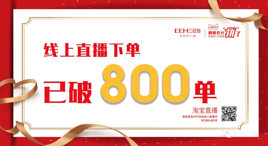 直播兩小時(shí),累計(jì)線(xiàn)上下單超1000單,億合門(mén)窗能夠成功實(shí)現(xiàn)線(xiàn)上營(yíng)銷(xiāo)的突破,取得如此可喜的成績(jī),并不偶然為之,而是億合營(yíng)銷(xiāo)團(tuán)隊(duì)夜以繼日的付出與努力。