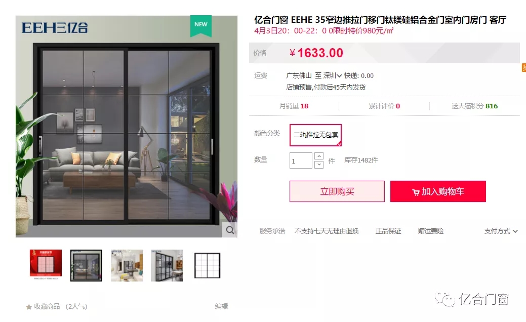 ▲▲直播兩小時(shí),35窄邊推拉門(mén)訂單破18單