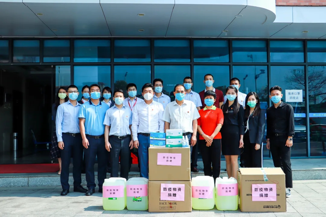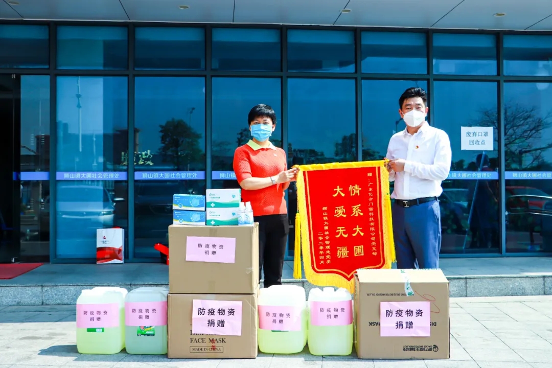 交流聯(lián)誼會(huì)結(jié)束后,三位支部書(shū)記和黨員代表共同前往獅山鎮(zhèn)大圃社會(huì)管理區(qū)開(kāi)展走訪活動(dòng),并向大圃社會(huì)管理區(qū)防疫物資捐贈(zèng)。