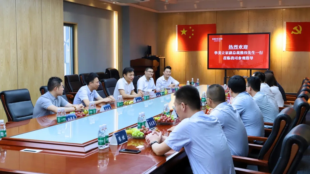 2020年6月5日,華美立家集團(tuán)副總裁熊偉一行蒞臨億合門窗總部參觀交流,億合門窗總經(jīng)理胡超、副總經(jīng)理胡凱杰攜公司營(yíng)銷中心領(lǐng)導(dǎo)熱情接待。雙方就深度合作進(jìn)行交流探討,暢談未來(lái)發(fā)展共贏之路。