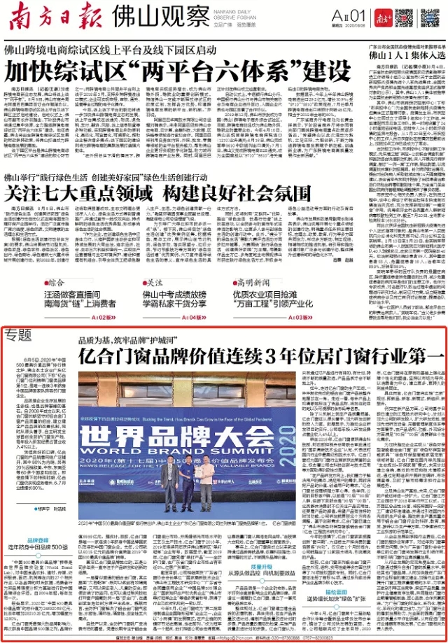 2020年8月5日,世界品牌實驗室在北京正式發(fā)布2020年《中國500最具價值品牌》排行榜,億合門窗以89.59億元的品牌價值躋身其中。作為唯一連續(xù)3年躋身中國品牌國家隊陣容的門窗企業(yè),億合門窗的品牌價值已位居全國門窗行業(yè)之首。