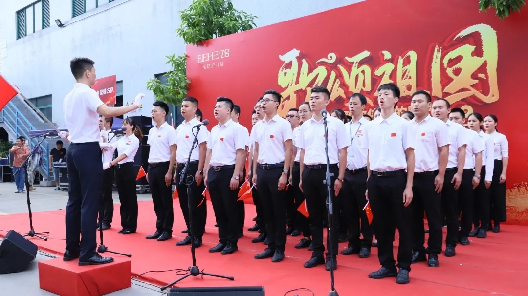 9月30日清晨,廣東省門窗協(xié)會(huì)會(huì)長(zhǎng)、億合門窗董事長(zhǎng)曾奎,億合門窗常務(wù)副總經(jīng)理汪銘、副總經(jīng)理胡凱杰、副總經(jīng)理郭遠(yuǎn)志攜公司全體員工用歌聲向祖國71華誕深情表白。