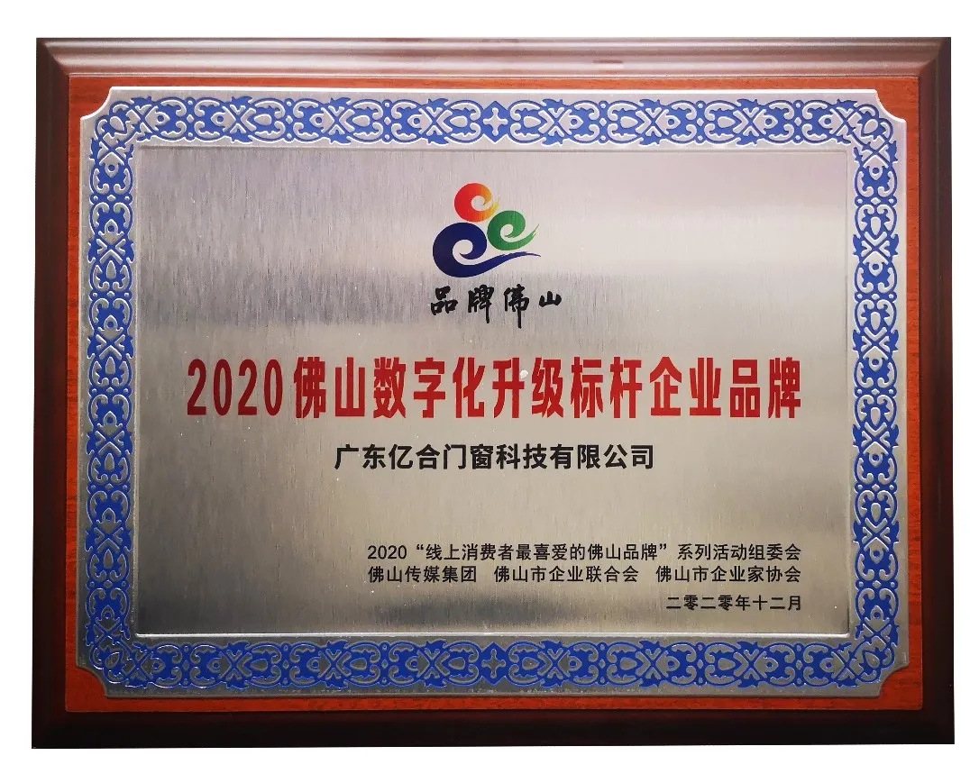 2020年12月23日,由佛山市市場監(jiān)督管理局、佛山市工業(yè)和信息化局、佛山市政務(wù)服務(wù)數(shù)據(jù)管理局指導(dǎo),佛山傳媒集團(tuán)、佛山市企業(yè)聯(lián)合會、佛山市企業(yè)家協(xié)會主辦的佛山數(shù)字經(jīng)濟(jì)峰會暨品牌佛山授權(quán)儀式在佛山隆重舉行,億合門窗憑借不斷推進(jìn)在數(shù)字化領(lǐng)域的蓬勃發(fā)展,斬獲“2020佛山數(shù)字化升級標(biāo)桿企業(yè)品牌”稱號。