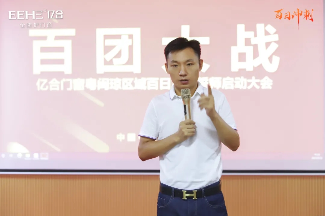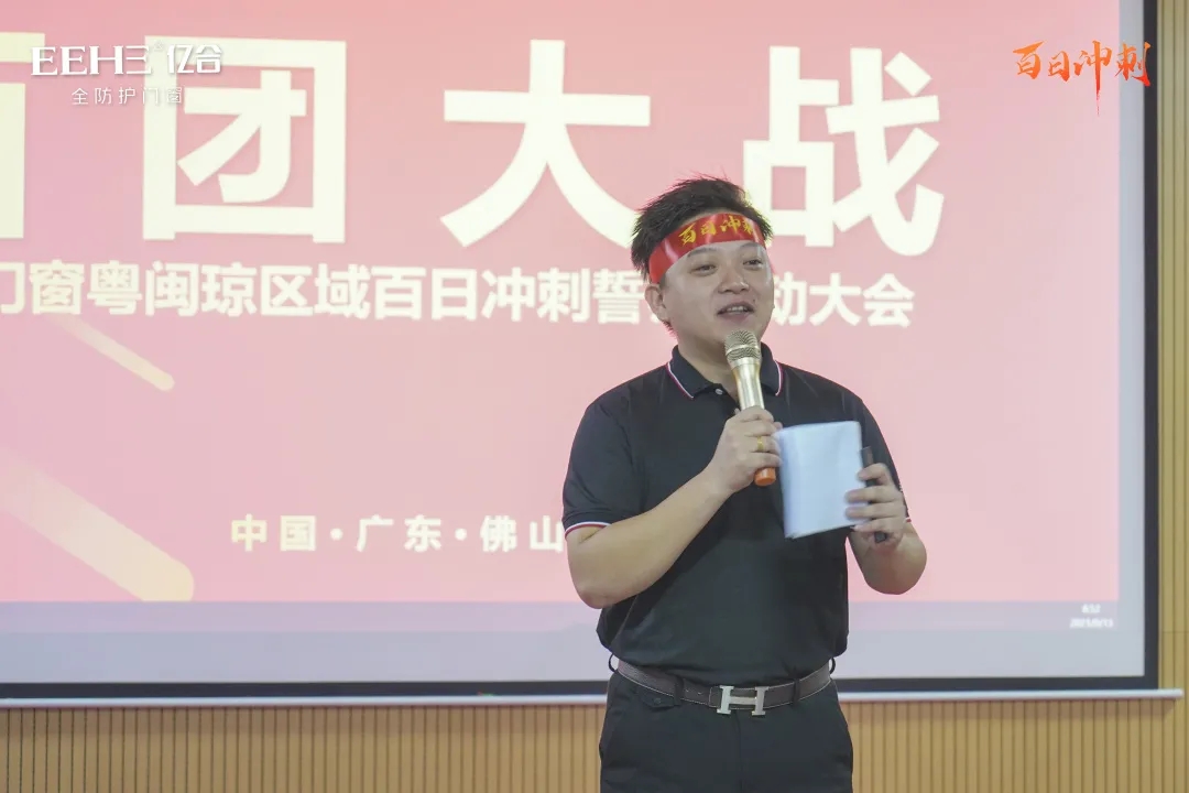 百日競渡,破浪展雄風(fēng)。面對激烈的市場競爭環(huán)境,如何快速突出重圍,打贏這場百日戰(zhàn)役,精準(zhǔn)的策略、堅(jiān)決地執(zhí)行是勝利的關(guān)鍵。9月13日,億合門窗總部隆重召開了粵閩瓊區(qū)域百日沖刺誓師啟動(dòng)大會(huì),億合門窗總經(jīng)理胡超、營銷中心副總經(jīng)理劉科特等領(lǐng)導(dǎo)及粵閩瓊區(qū)域經(jīng)銷商共同出席會(huì)議。