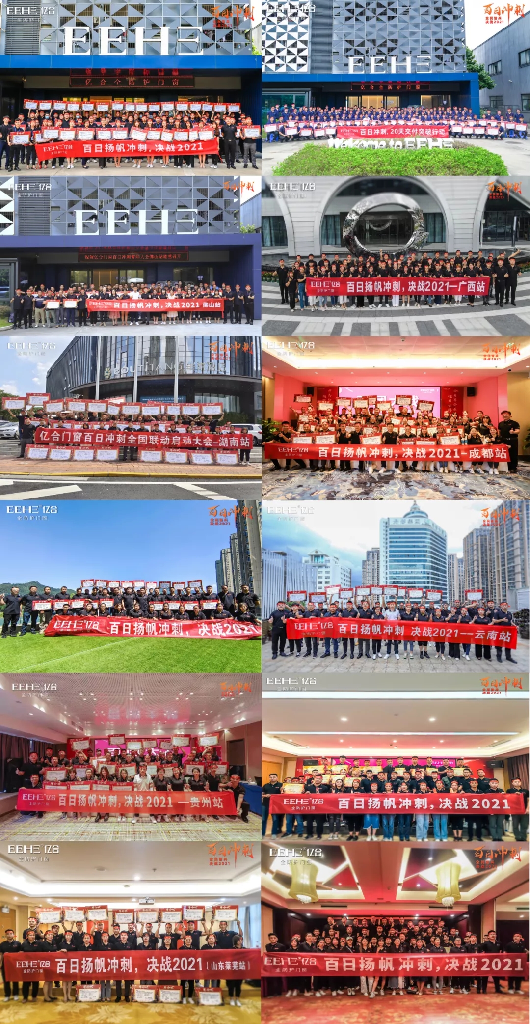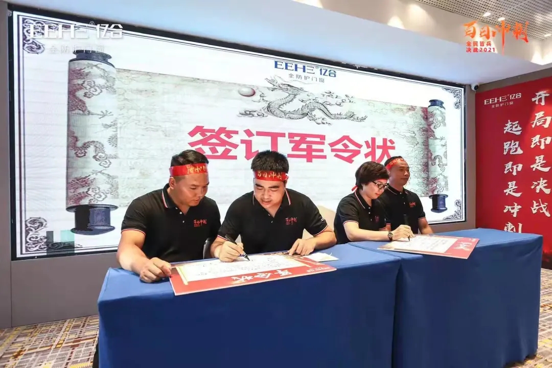 雷霆炮鐵流滾滾震沙場,神劍舞將士戈壁磨利劍。9月13-18日,億合門窗總經(jīng)理胡超、副總經(jīng)理劉科特親自帶領(lǐng)公司營銷團隊和全國經(jīng)銷商,在全國十大戰(zhàn)區(qū)吹響“百日沖刺,決戰(zhàn)2021”沖鋒號,堅決打贏百日沖刺攻堅戰(zhàn)。