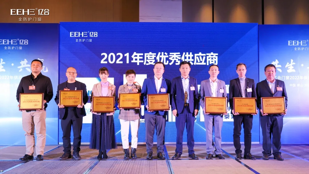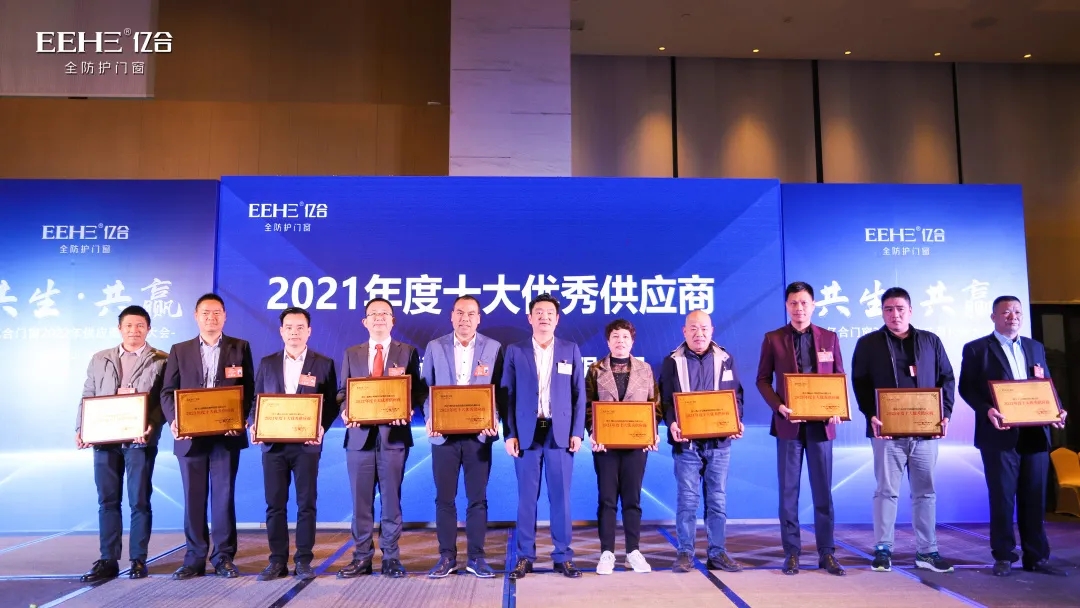 即將過去的2021年,在國際大宗商品價(jià)格持續(xù)暴漲的影響下,億合門窗仍舊憑借百折不饒的精神,以及優(yōu)質(zhì)的產(chǎn)品和服務(wù),向廣大用戶交上了一份漂亮的答卷。在這背后,離不開全體供應(yīng)商的配合和支持。此次會(huì)上,億合門窗為2021年度表現(xiàn)卓越的供應(yīng)商伙伴頒發(fā)了“2021年度十大供應(yīng)商”以及“2021年度優(yōu)秀供應(yīng)商”兩大獎(jiǎng)項(xiàng)。