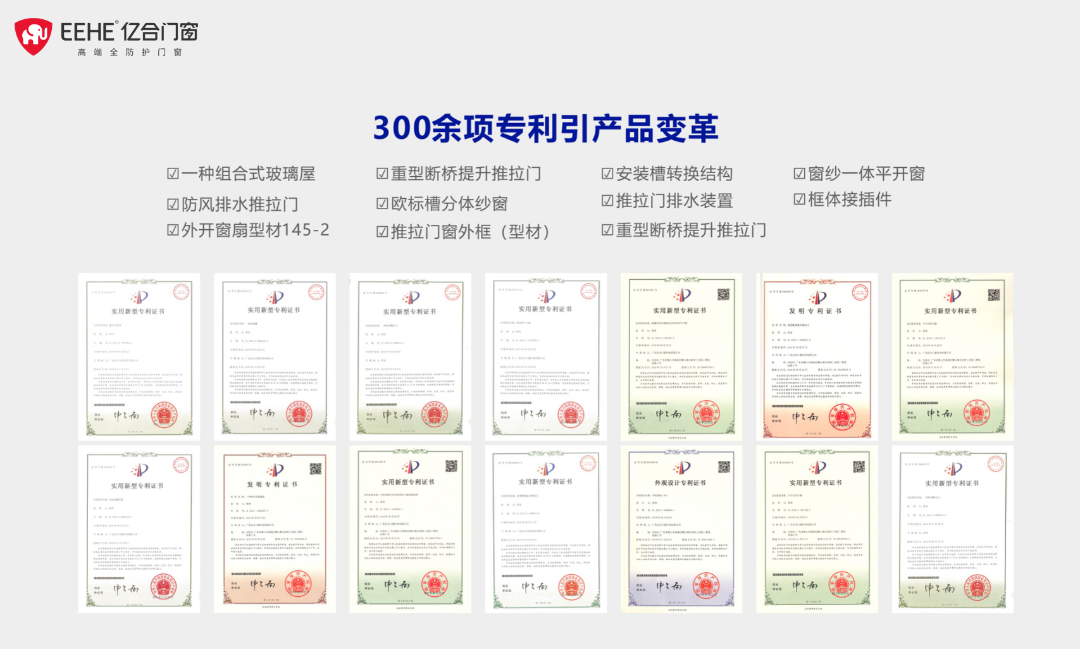 14年匠心智造,億合門(mén)窗一直以“億兆同合 大象無(wú)形”為初心,專(zhuān)注于全防護(hù)系統(tǒng)門(mén)窗研發(fā)、制造和銷(xiāo)售。先后獲得國(guó)家3C認(rèn)證、ISO國(guó)際檢測(cè)、ISET國(guó)際認(rèn)證等多項(xiàng)權(quán)威認(rèn)證以及“亞洲品牌500強(qiáng)”、“家居消費(fèi)者口碑品牌”等榮譽(yù)稱(chēng)號(hào),并連續(xù)5年躋身“中國(guó)500最具價(jià)值品牌”,實(shí)力雄厚。作為廣東省門(mén)窗協(xié)會(huì)會(huì)長(zhǎng)單位,億合門(mén)窗還不斷以創(chuàng)新驅(qū)動(dòng)發(fā)展,300余項(xiàng)專(zhuān)利引領(lǐng)產(chǎn)品迭代變革。