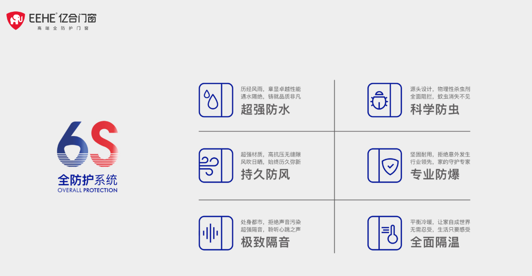 億合門(mén)窗在全行業(yè)首創(chuàng)6S全防護(hù)系統(tǒng),以覆蓋“春夏秋冬全四季,東經(jīng)北緯帶兩極,蚊蠅蟲(chóng)&多聲噪,風(fēng)霜雨雪沙雷雹”的研發(fā)標(biāo)準(zhǔn)進(jìn)行360°全方位防護(hù)產(chǎn)品矩陣打造。本次獲得SGS國(guó)際認(rèn)證,具有重要的行業(yè)風(fēng)向標(biāo)意義。