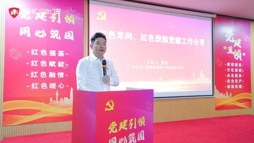 廣東億合門窗科技有限公司黨支部書記、董事長曾奎對企業(yè)“紅色車間”、“紅色班組”黨建工作作經(jīng)驗分享,介紹億合門窗堅持黨建工作與經(jīng)營工作同步謀劃、一起部署、一并推進。面對當前的經(jīng)濟形勢,更需要拉動“黨建促經(jīng)營,經(jīng)營強黨建”的內(nèi)循環(huán),未來億合門窗黨支部及全體黨員都將以更加堅定的信念,更加飽滿的熱情,更加務實的作風,投身于公司的各項經(jīng)營與黨建工作中去,凝心聚力,共擔使命,助力產(chǎn)業(yè)園區(qū)譜寫高質(zhì)量發(fā)展新篇章!