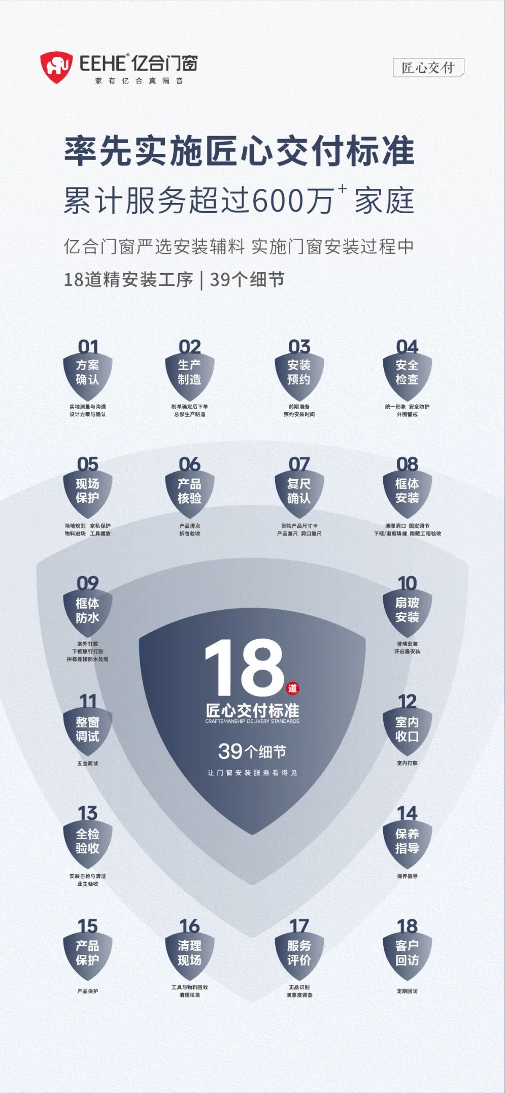針對(duì)舊窗存在的各種隱患,億合門(mén)窗率先實(shí)施“匠心交付”安裝標(biāo)準(zhǔn),通過(guò)18道工序和39個(gè)細(xì)節(jié),從精確測(cè)量到專(zhuān)屬定制,從細(xì)致安裝到全面驗(yàn)收,億合門(mén)窗嚴(yán)格把控安裝交付每個(gè)環(huán)節(jié),確保專(zhuān)業(yè)化、標(biāo)準(zhǔn)化、流程化,以高品質(zhì)交付服務(wù)模式,讓用戶(hù)買(mǎi)得放心、用得省心、住得安心,全程無(wú)憂(yōu)。