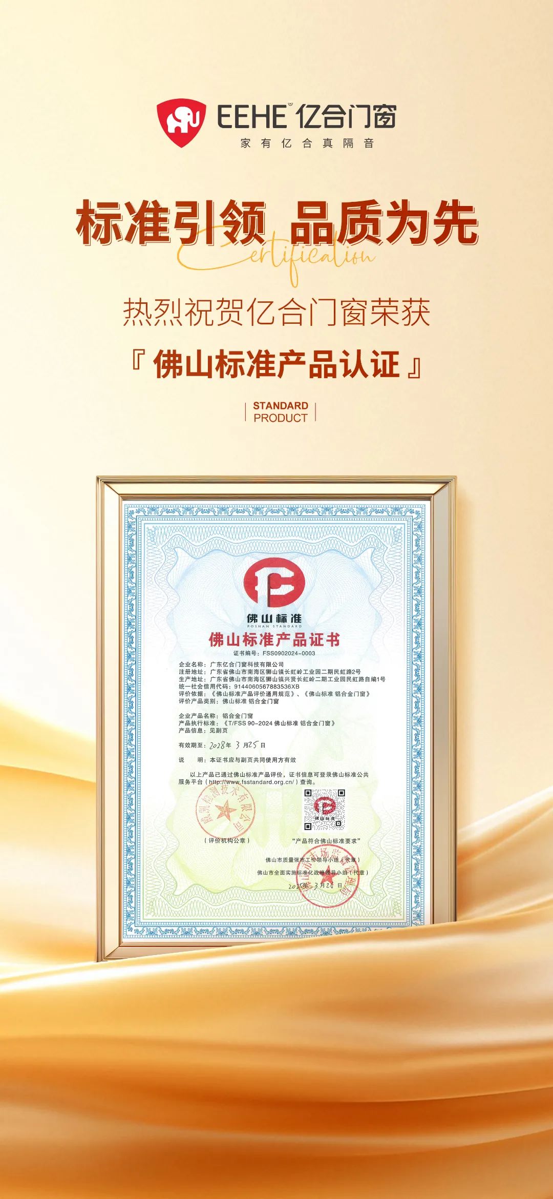 對(duì)標(biāo)世界·認(rèn)準(zhǔn)佛山 | 億合門(mén)窗榮獲“佛山標(biāo)準(zhǔn)”產(chǎn)品認(rèn)證!