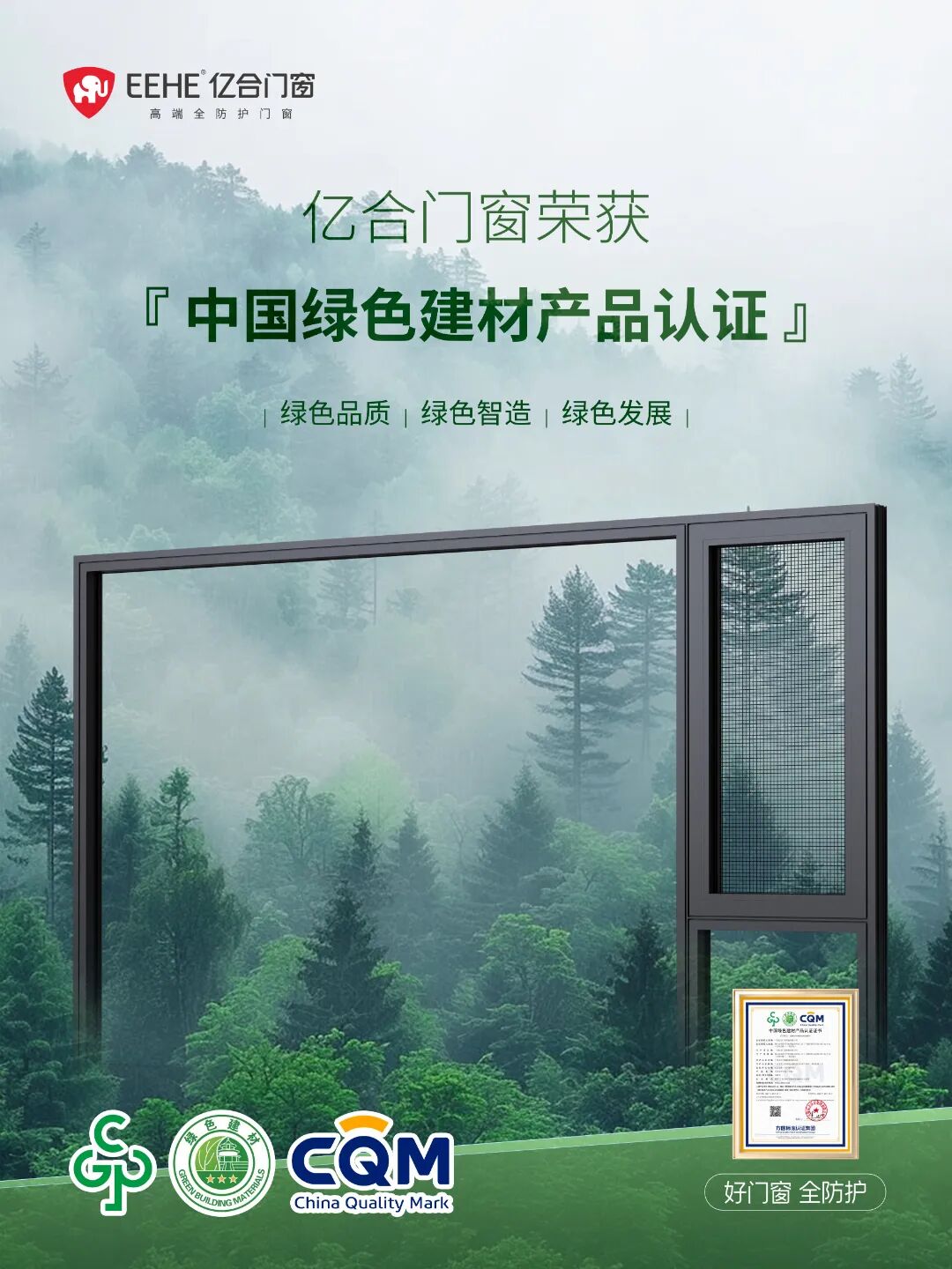 國(guó)家認(rèn)證· 綠色品質(zhì) | 億合門窗榮獲“中國(guó)綠色建材產(chǎn)品”認(rèn)證