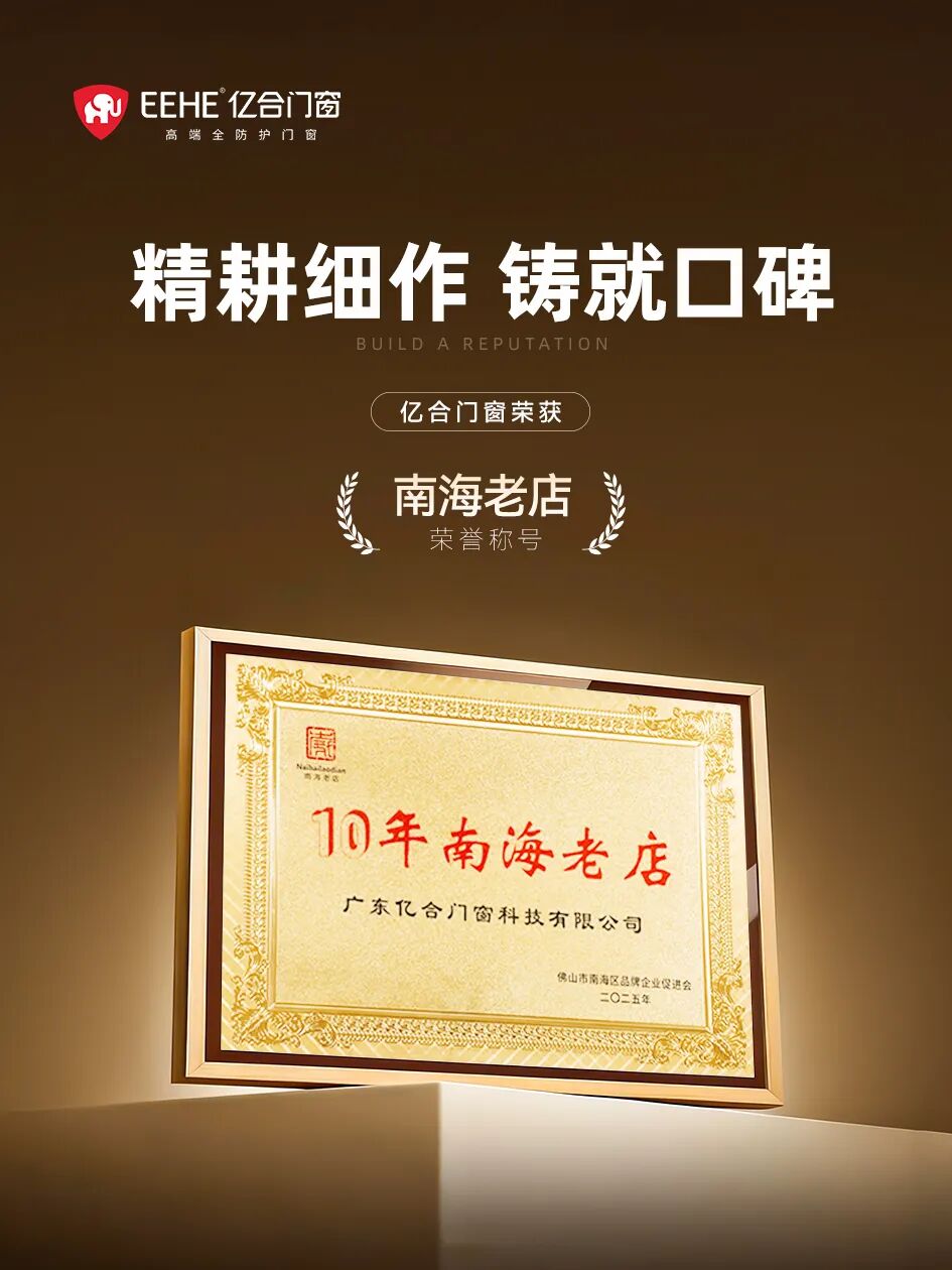 “南海老店”作為佛山市南海區(qū)重點打造的產業(yè)品牌標識,承載著對區(qū)域優(yōu)質企業(yè)的權威認可與產業(yè)傳承的時代使命。該稱號聚焦企業(yè)經(jīng)營年限、產業(yè)貢獻、品牌信譽、創(chuàng)新能力等核心維度,嚴苛遴選在制造業(yè)等領域深耕細作、誠信經(jīng)營、兼具文化傳承與創(chuàng)新活力的優(yōu)秀企業(yè)。億合門窗獲此殊榮,既是對企業(yè)十七年如一日堅守門窗制造主業(yè)、恪守誠信經(jīng)營準則、踐行產業(yè)發(fā)展責任的高度肯定,更彰顯了在技術研發(fā)、產品創(chuàng)新、行業(yè)引領等方面的硬核實力,印證了“南海老店”老而彌堅、老而彌新的精神內核。